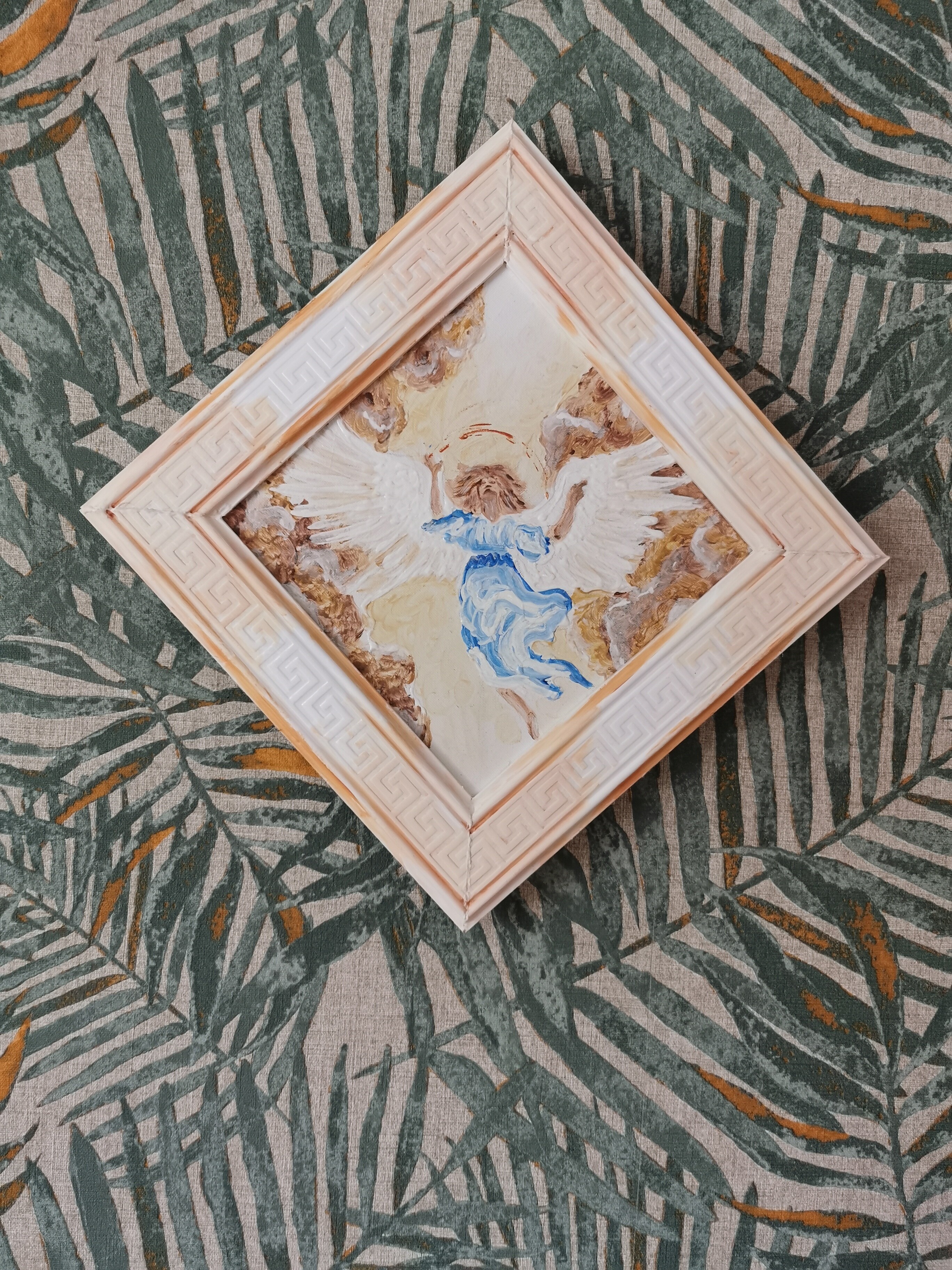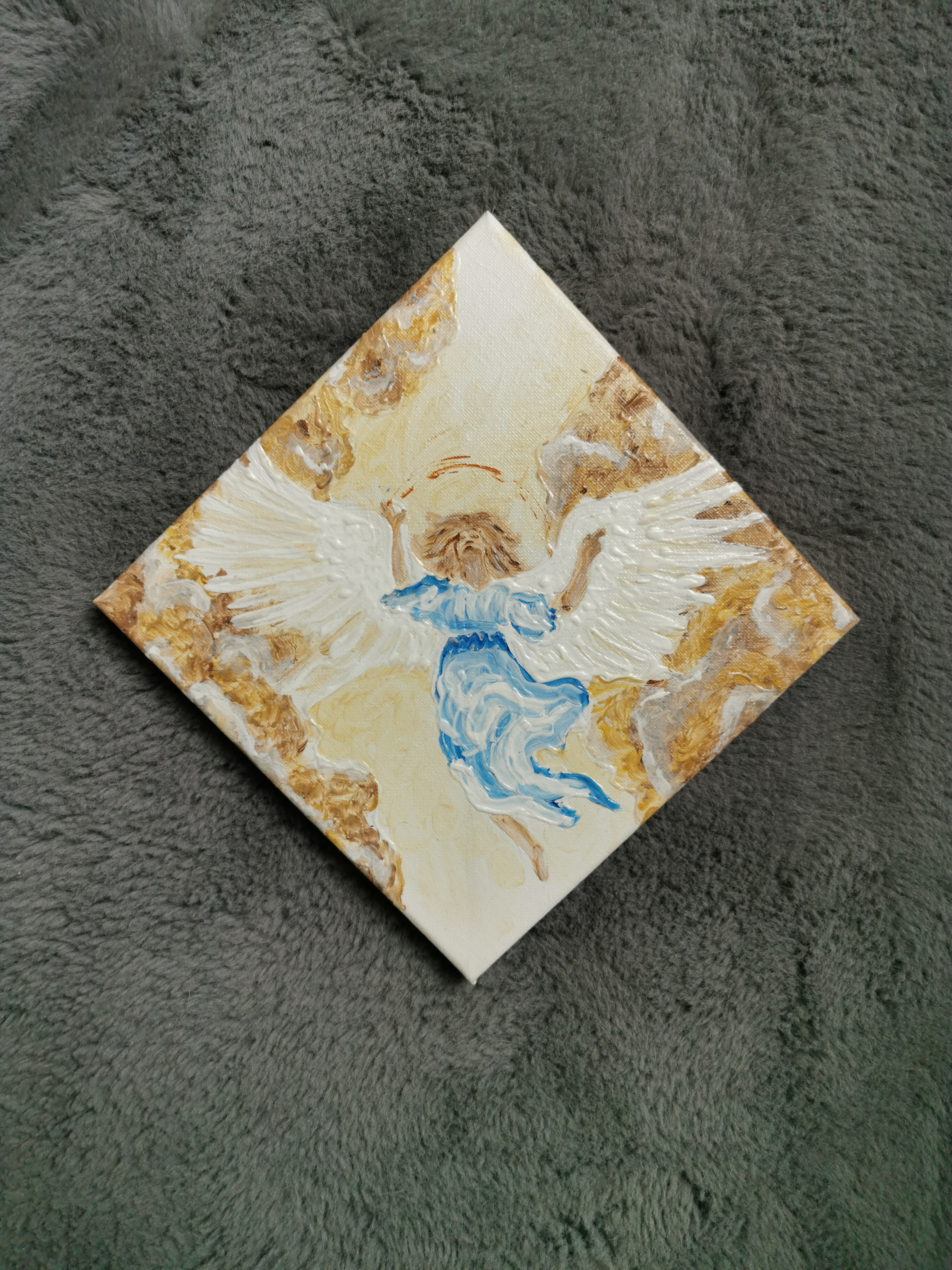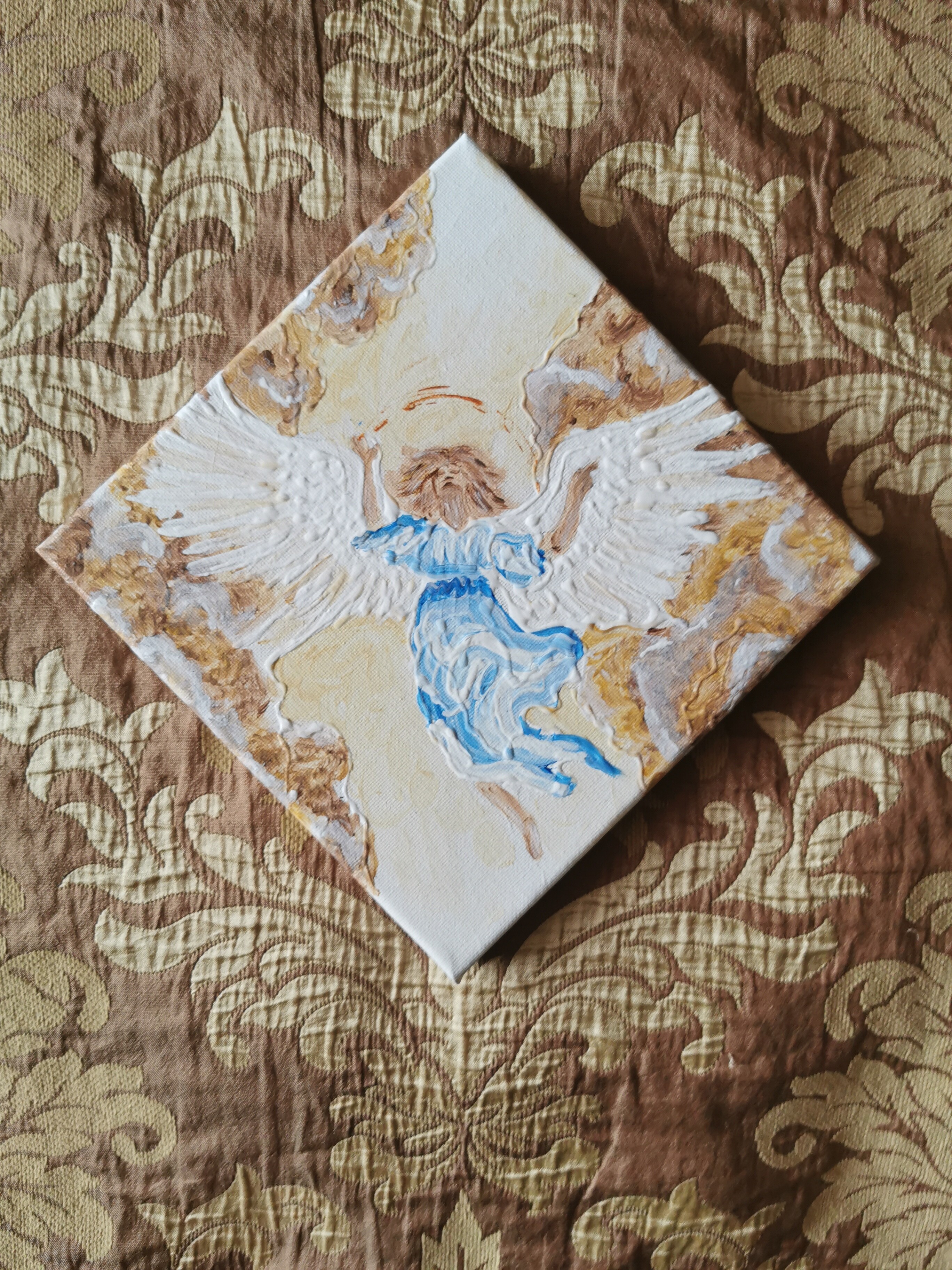 Tiny acrylic painting “angel among the clouds” dimensions 20cm x .