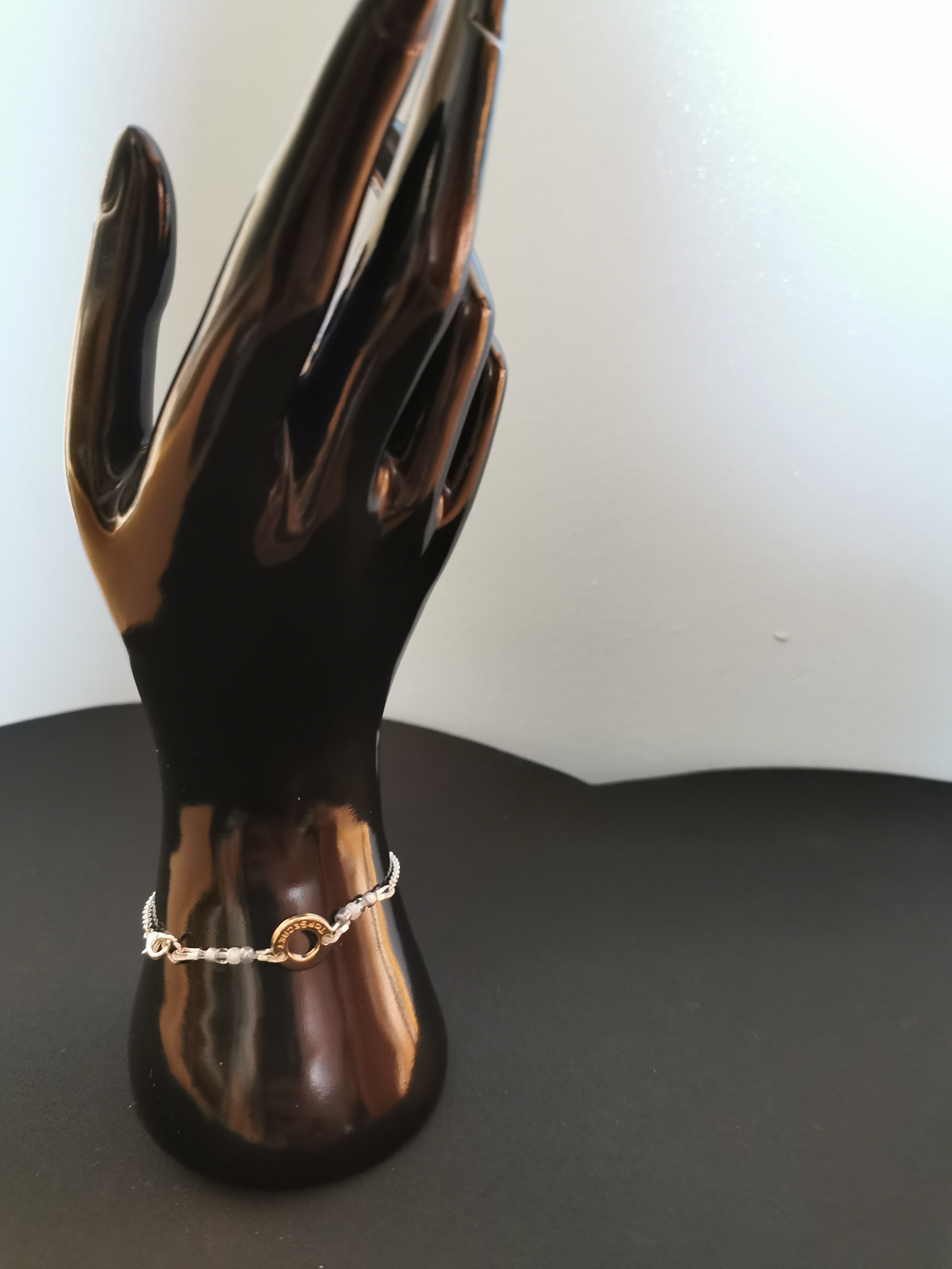 Elegant Beaded Bracelet with Gold Ring Accent - Silver & Grey Tones