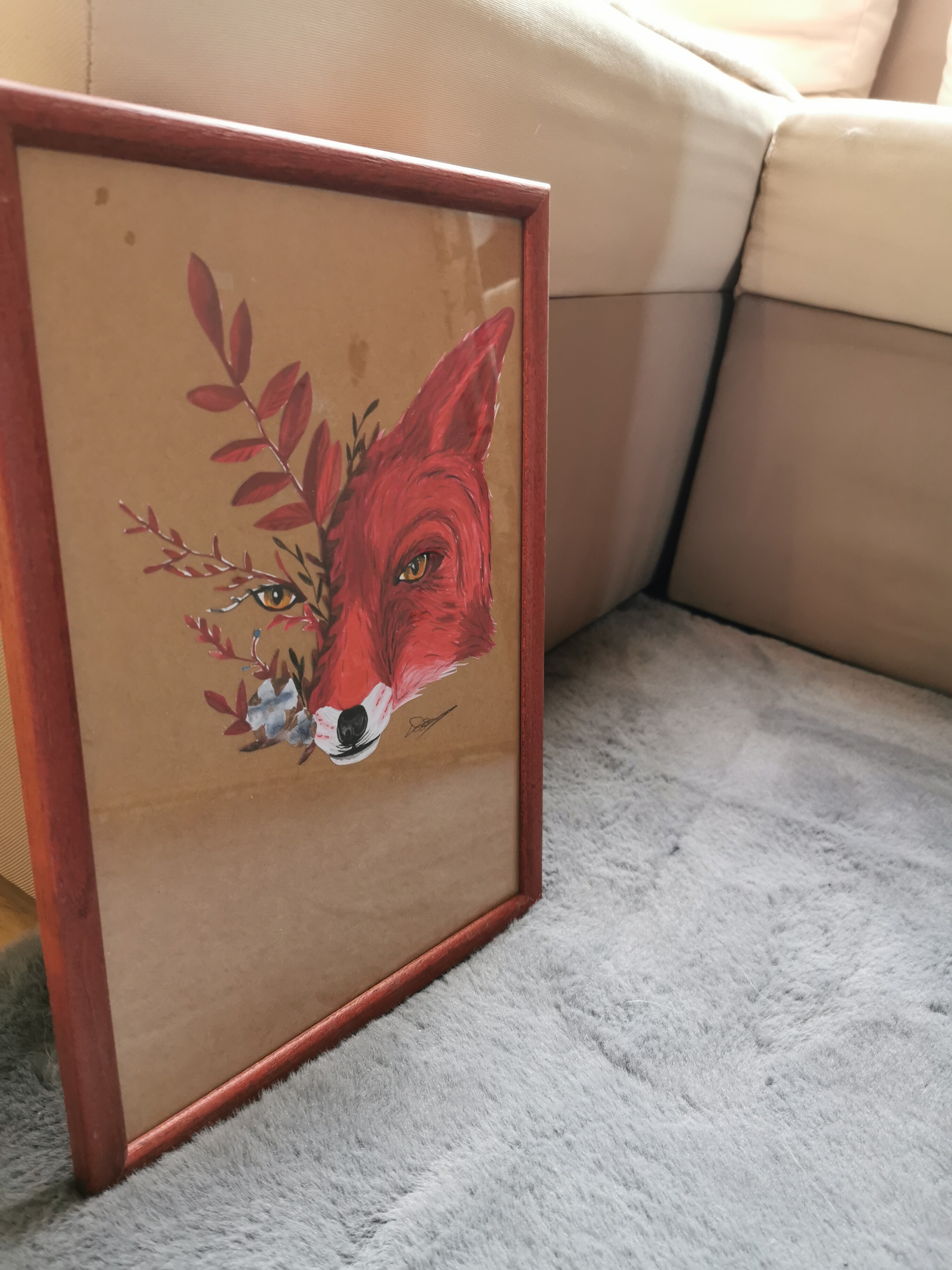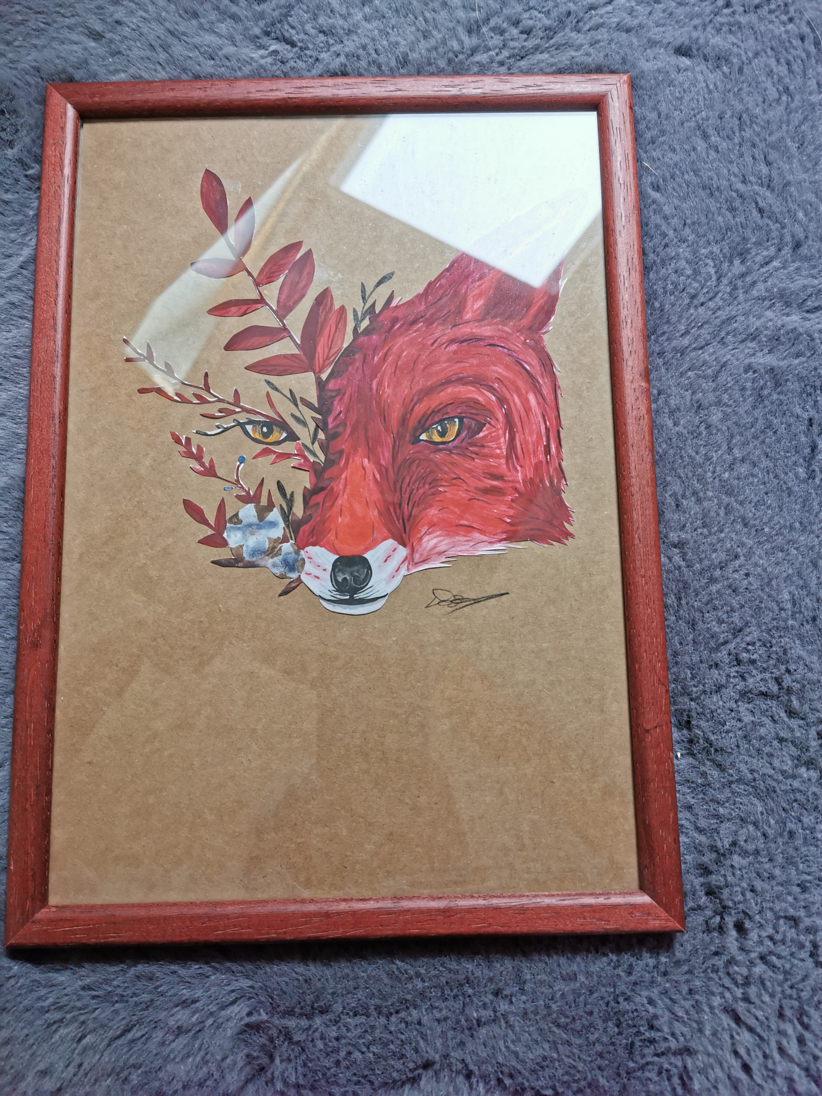 This drawing comes professionally presented in a classic wooden frame, protected behind glass, making it ready to adorn your wall. It's a perfect addition for nature lovers, admirers of unique animal art, or anyone looking to add a touch of woodland magic to their home decor.