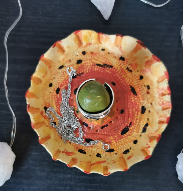 Bring a splash of vibrant, artistic flair to your dresser or vanity with this truly one-of-a-kind Hand-Painted Jewelry Dish. Its fun, wide-brimmed shape, directly inspired by the classic Sombrero hat, makes it the perfect decorative accent piece and catch-all for your most treasured items.