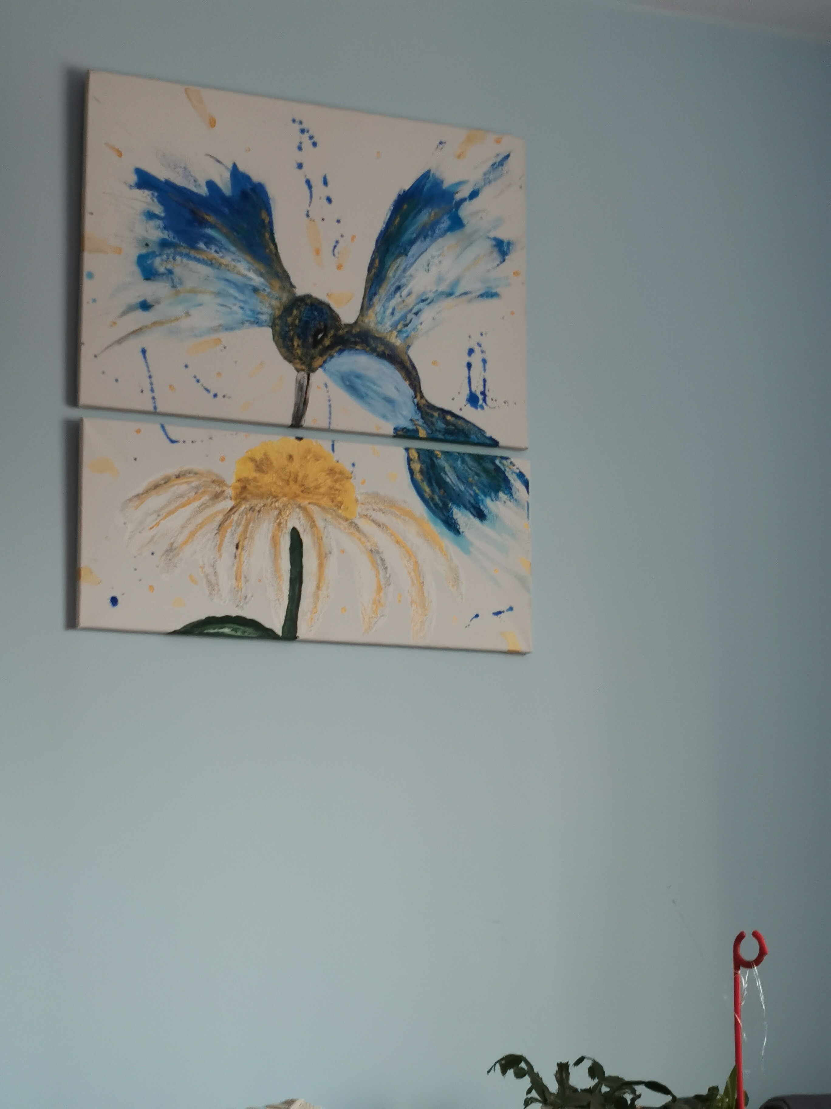 A painting consisting of two parts entitled. “ Hummingbird”
