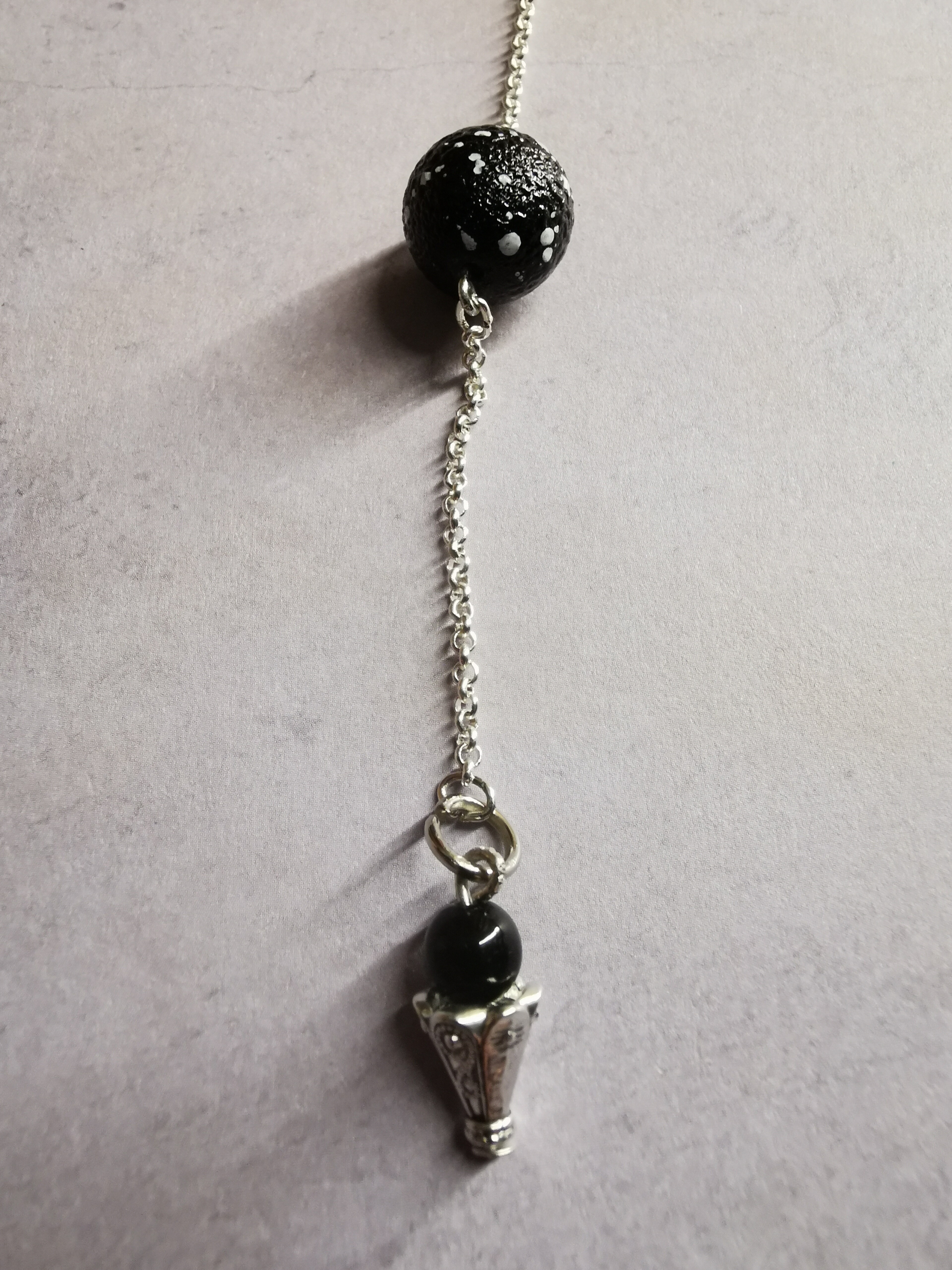 legant Black Glitter Radiesthesia Pendulum with Silver Chain - Intuitive Divination Tool