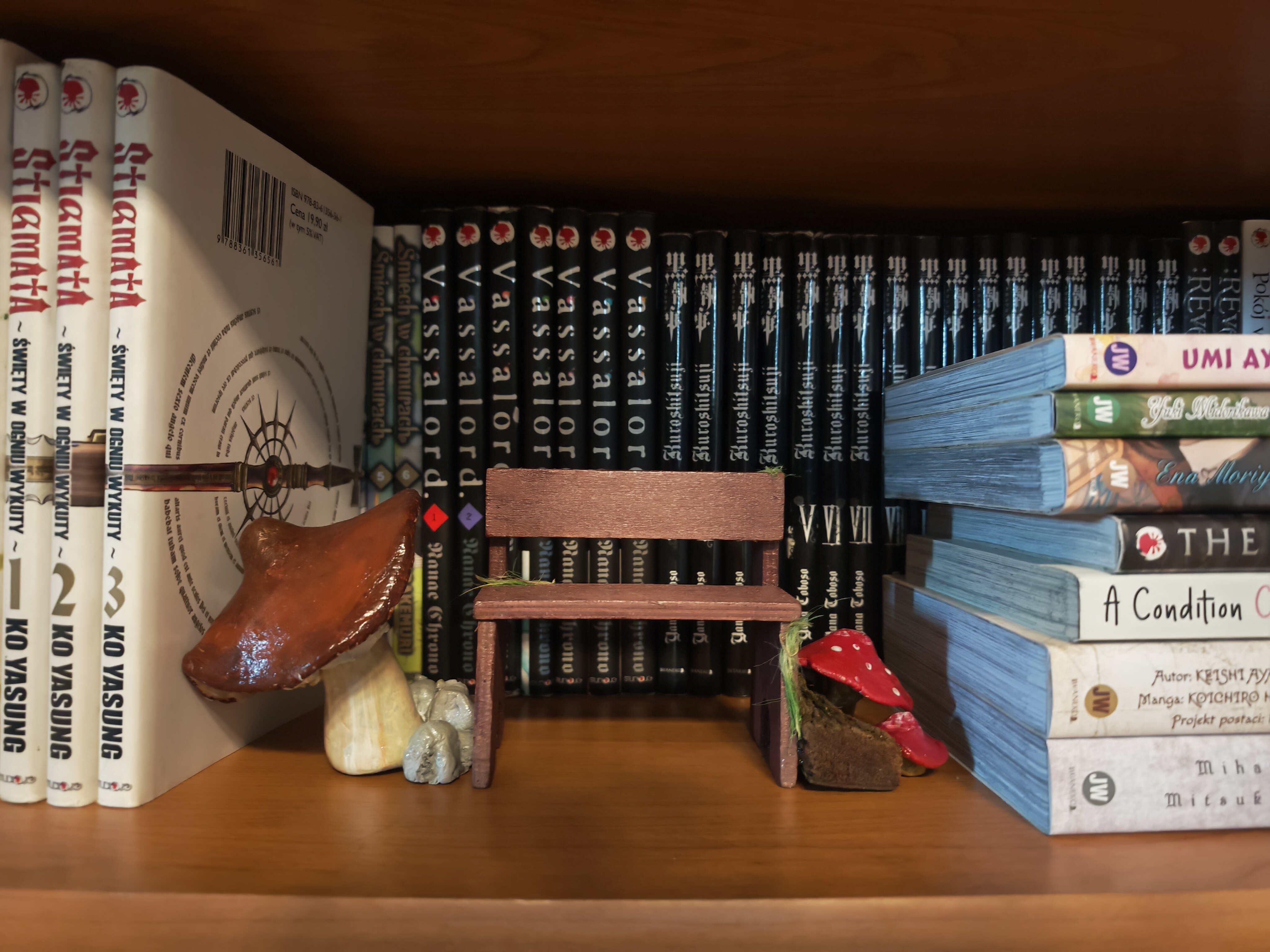 Miniature Wooden Bench: A rustic, tiny wooden bench, perfect for standing next to your favourite novel.