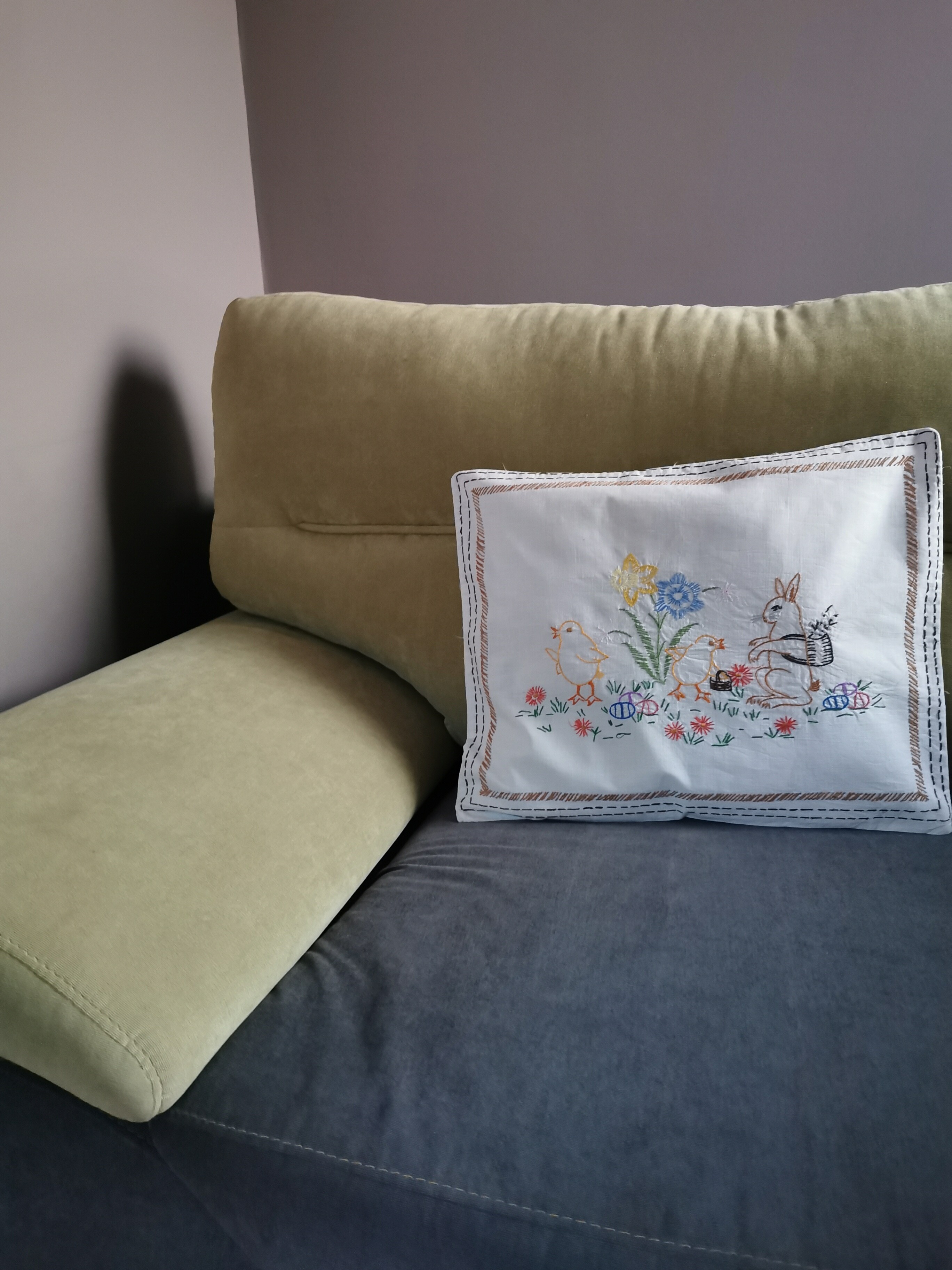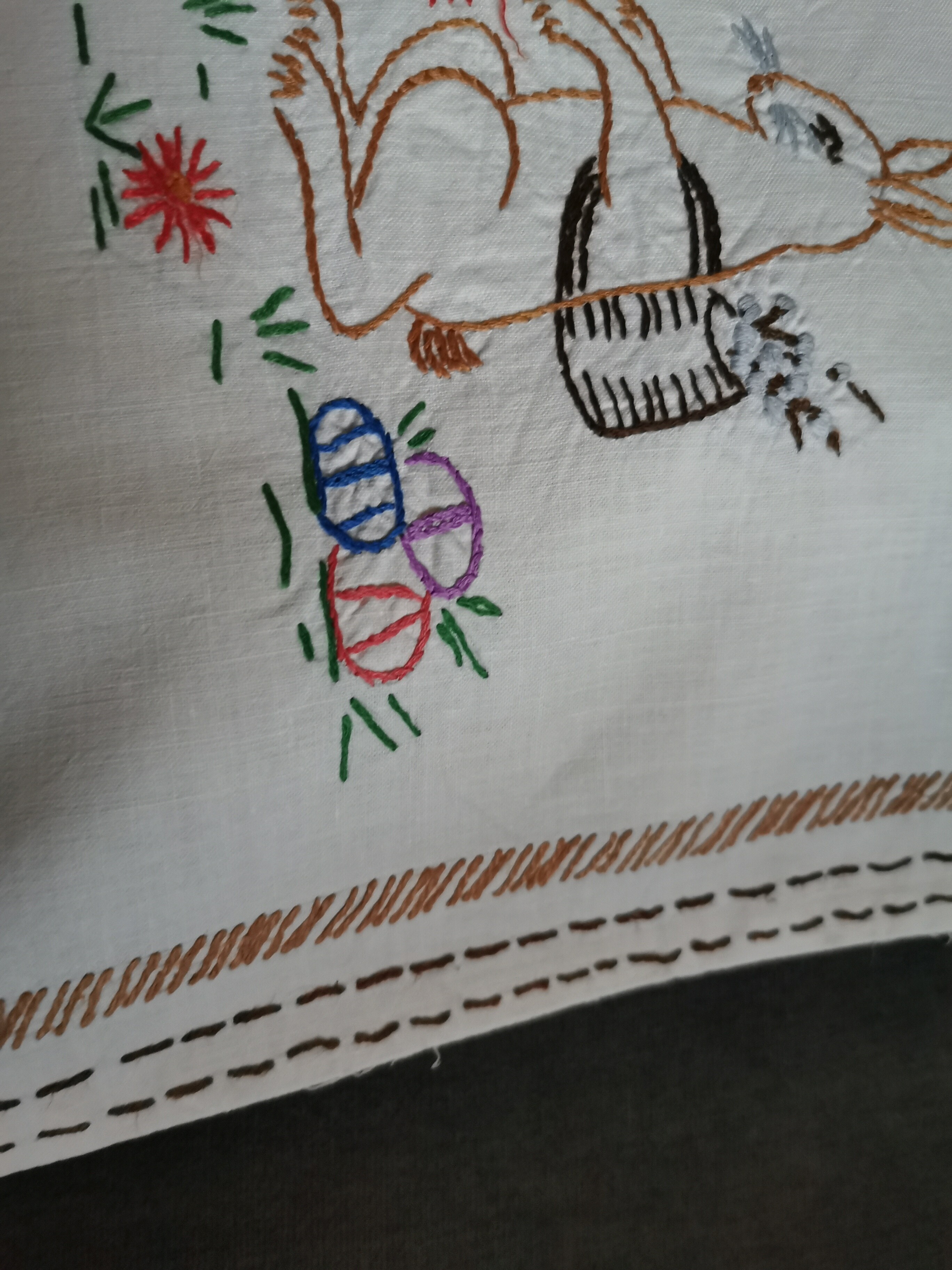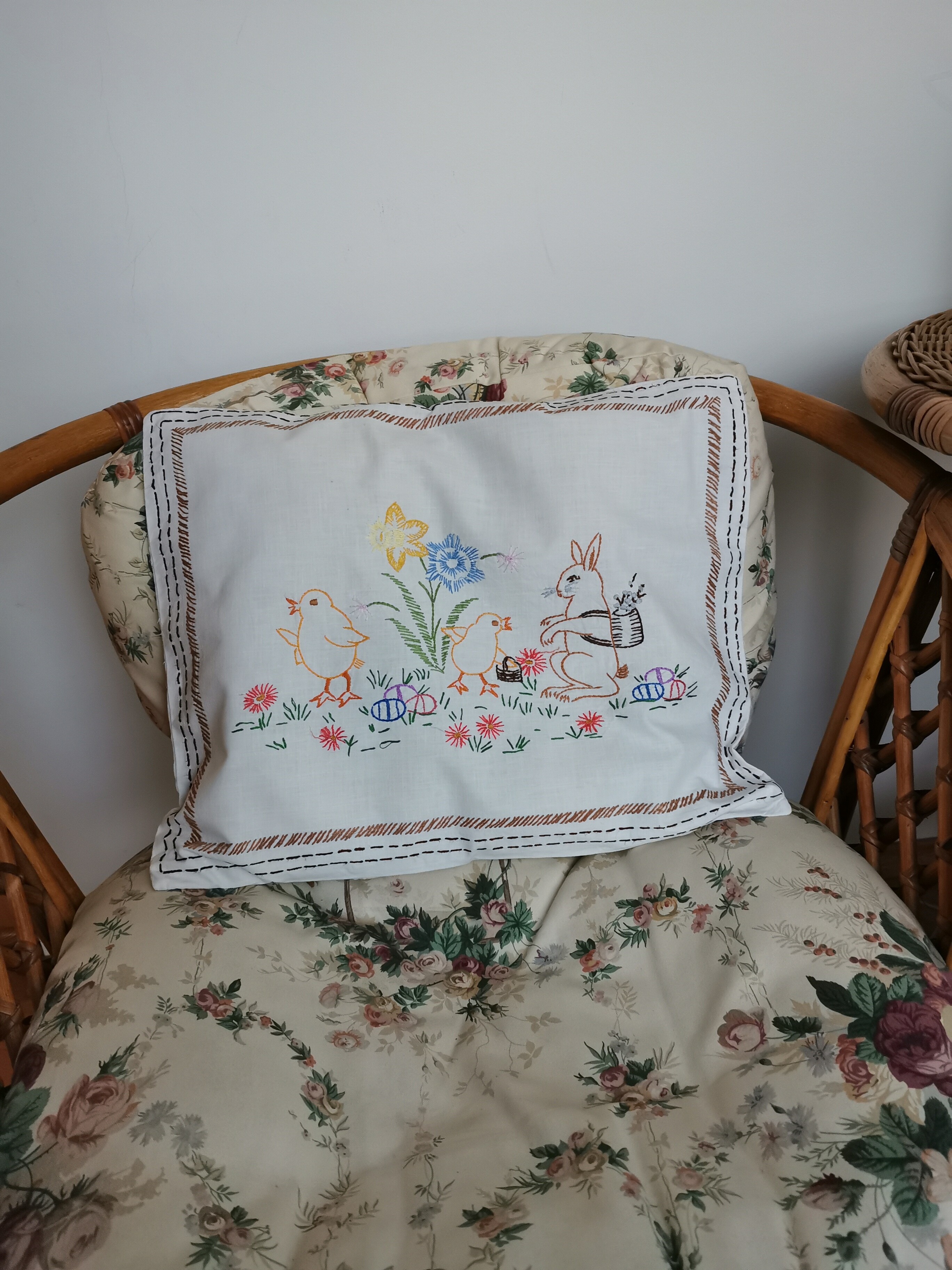More than just a seasonal accent, this pillowcase celebrates spring renewal and the joy of handmade craftsmanship. Perfect for those who appreciate unique decor and want to add a personal touch to their space. Bring home this hand-embroidered treasure and let it fill your home with Easter magic.