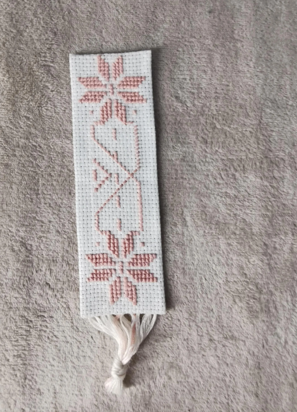 Embroidered bookmark with pink flowers