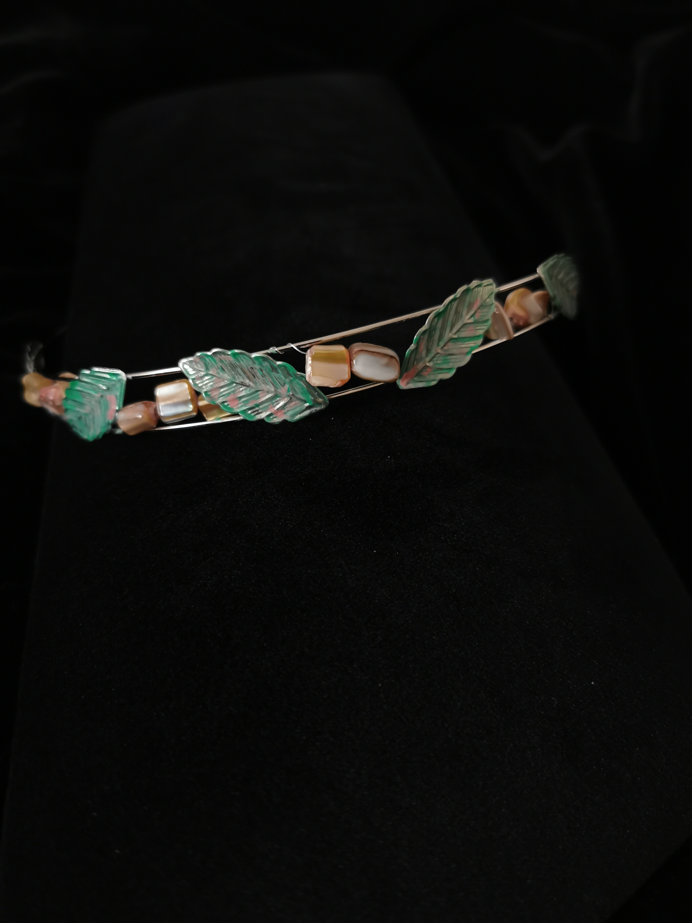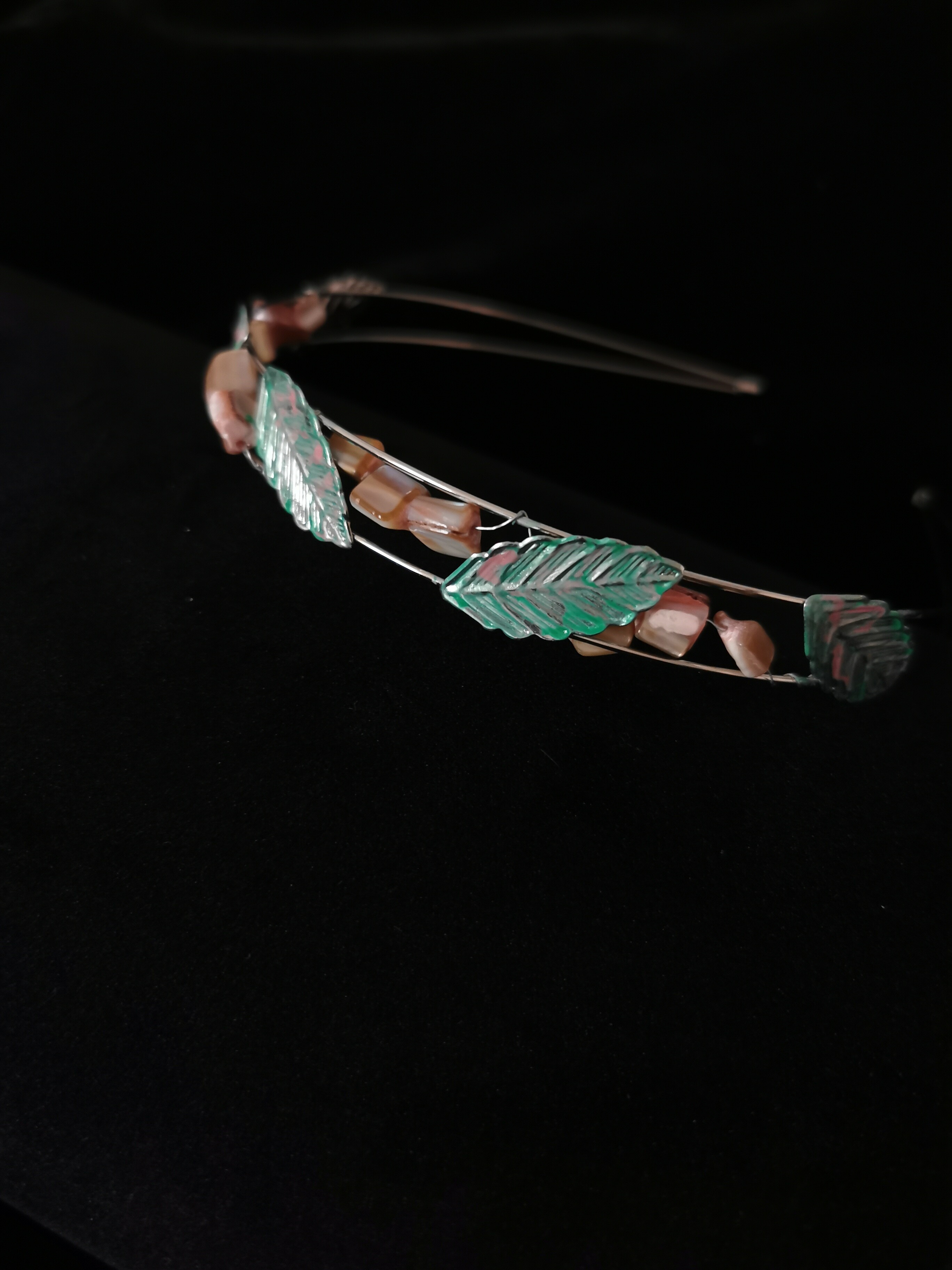 Hairband with leaves and pearl beads