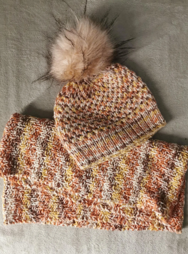 The infinity scarf is designed to wrap comfortably around your neck for warmth without bulk, while the cozy beanie has a fun pom-pom on top for a fashionable touch. Whether you're going for a brisk walk, heading to a winter meeting, or just enjoying a day outdoors, this set will keep you looking great and staying warm.