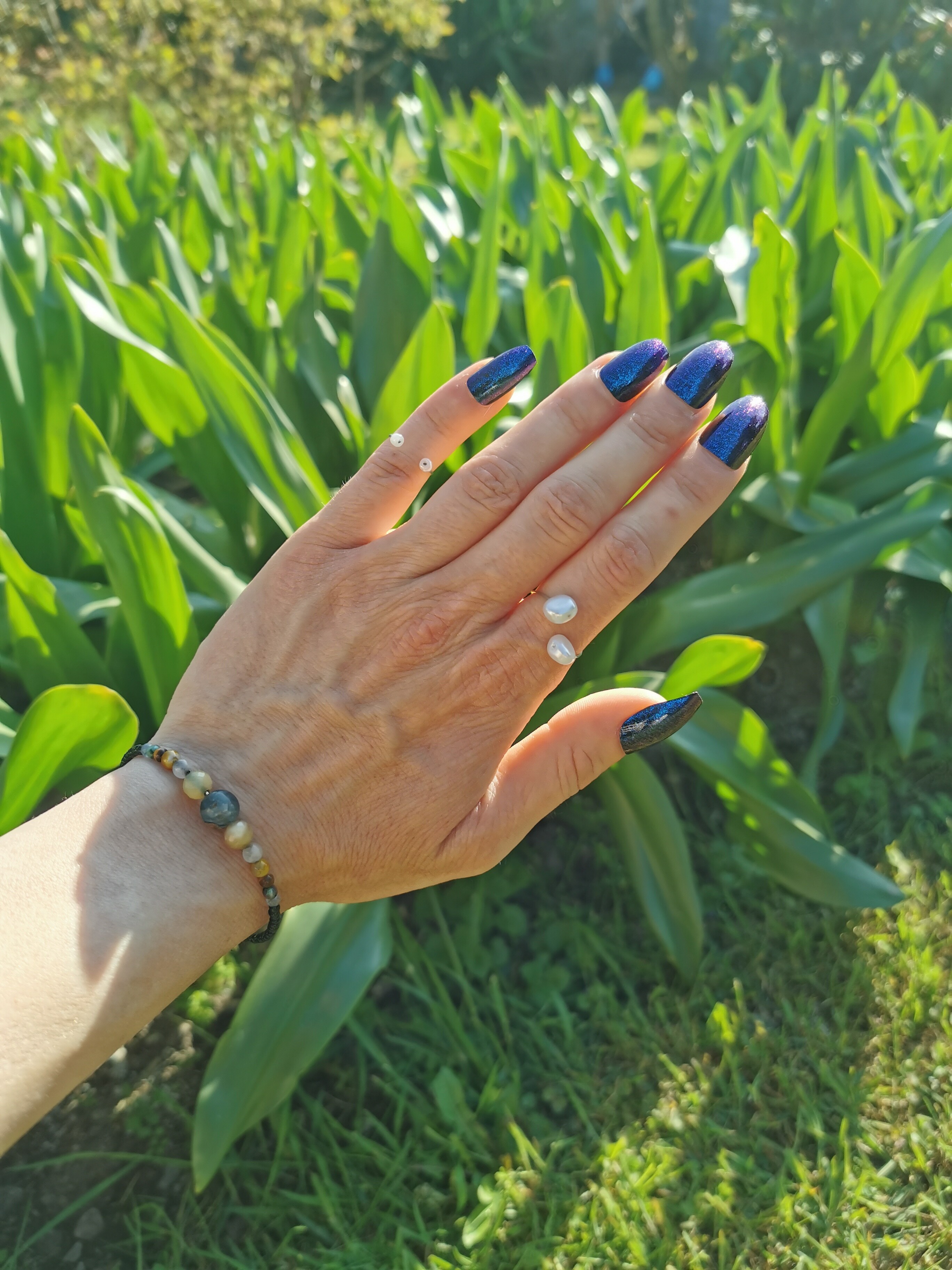 Set of 2 Adjustable White Faux Pearl Rings - Modern & Minimalist